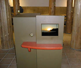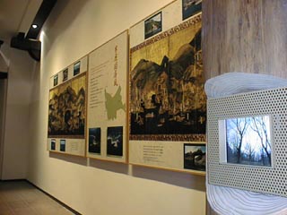 杉の木の中に埋め込まれたモニターを使って、伝承してきた男鹿特有の風土を表現したり、