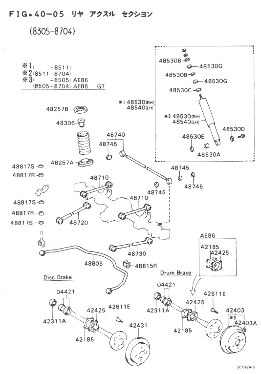 | c | 8505-8704 | AE86..GT | 04421-30011- RR DRUM BRAKE |