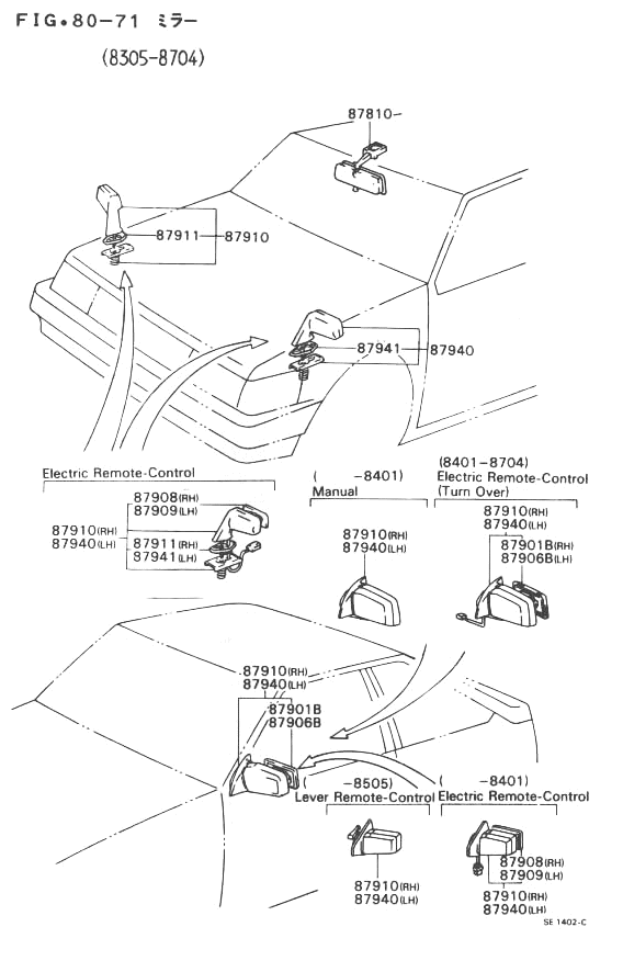 | 8401-8402 | AE8#..GL,SE,APX | # | 87940-80120- (87940-1A210- ) DOOR,ELECTRIC *RCM,TURN OVER | 1 | 27 | 52 | |