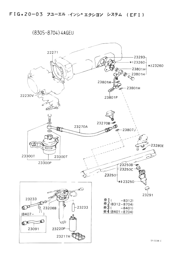 | 8305-8407 | 4AGEU..AE86 | # | 90923-01277- (23091-12020-) BRACKET TO FUEL PIPE |